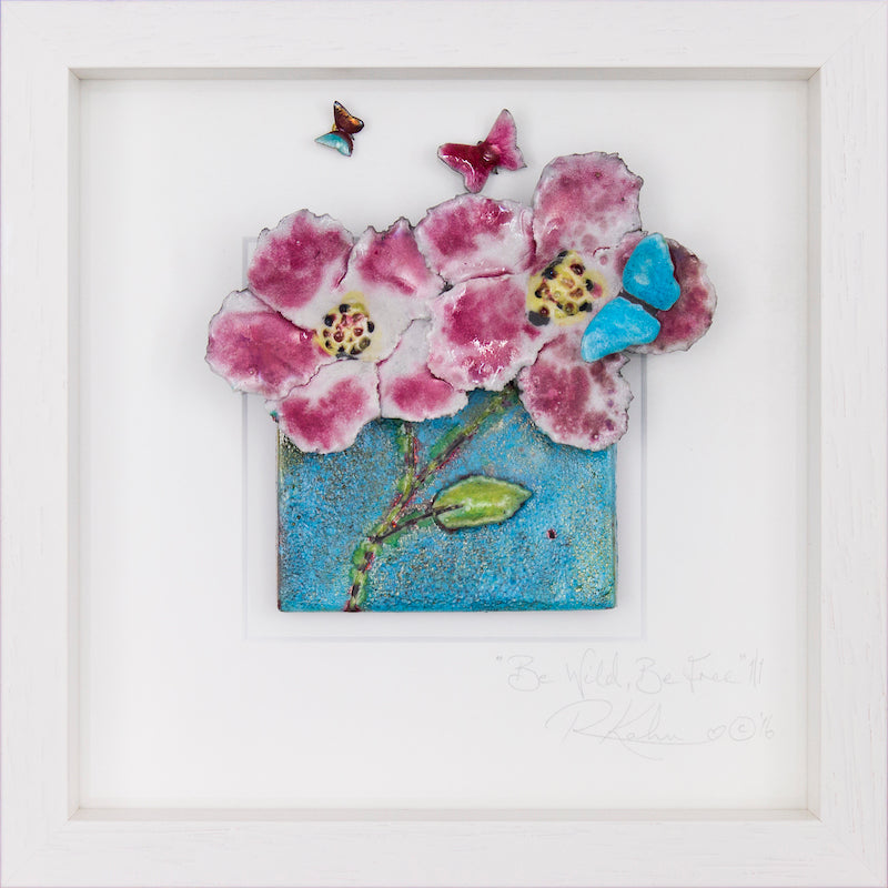 Stunning wild roses! With deep pink and antique cream coloured petals and a rich background with hints of stunning metallics which will change as the light changed throughout the day!