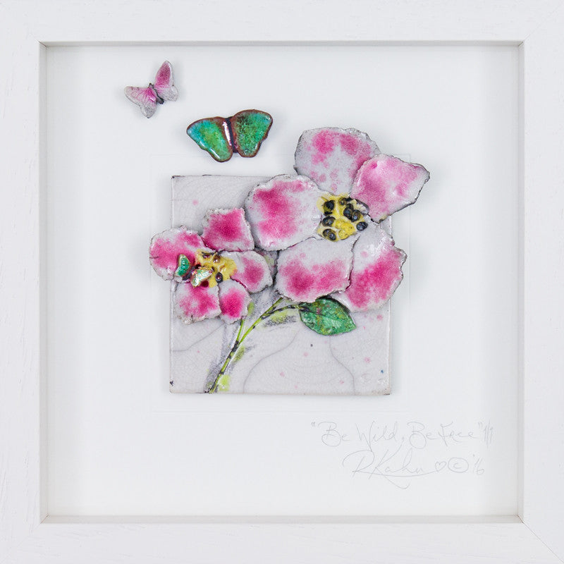 Deep pinks with hues of turquoise softly flowing through the butterflies with these wild roses.