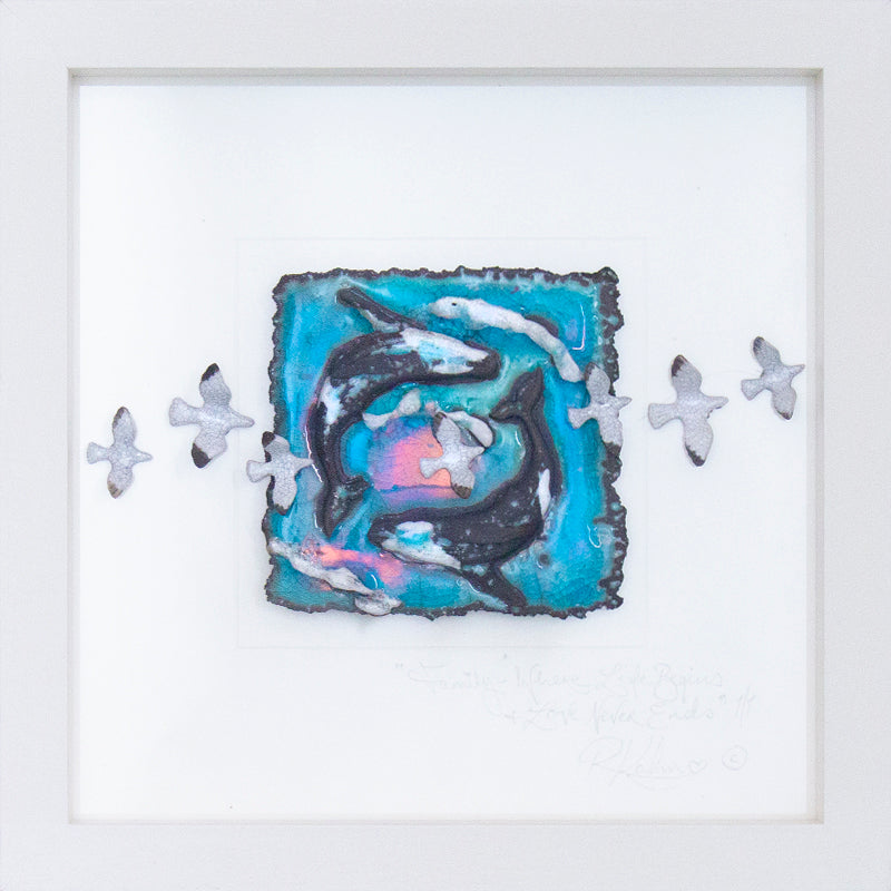 A NEW DESIGN! with stunning whales! It has lots of movement and drama with it's crashing white horses on the sunset speckled water of the ocean....yet it's turquoise colour and the serenity of the whales have a wonderfully calming effect...