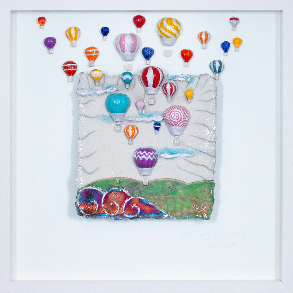 Whimsical hot air balloons, have such a sense of adventure, excitement and freedom! The perfect gift for so many occasions! This piece has lots of my NEW hot air balloons that are even 'more' 3D than before! Making the piece really come to life and gives such an amazingly uplifting feeling...
